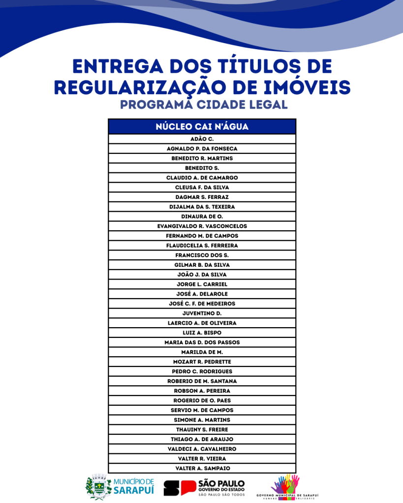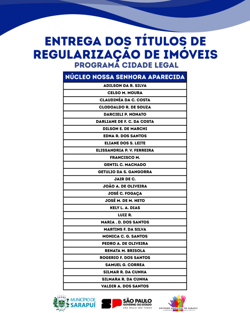 Você que se cadastrou no Programa Cidade Legal, chegou o grande momento! A Prefeitura de Sarapuí convida os moradores beneficiados nesta etapa para a entrega dos Títulos de Regularização Fundiária (Matrícula).
