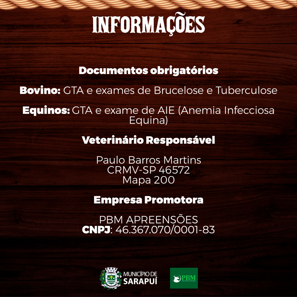 A Prefeitura Municipal de Sarapuí convida a população para prestigiar a Prova de Laço, que será realizada no dia 15 de março, a partir das 7h, no Centro de Eventos Wanderley Bernardes.